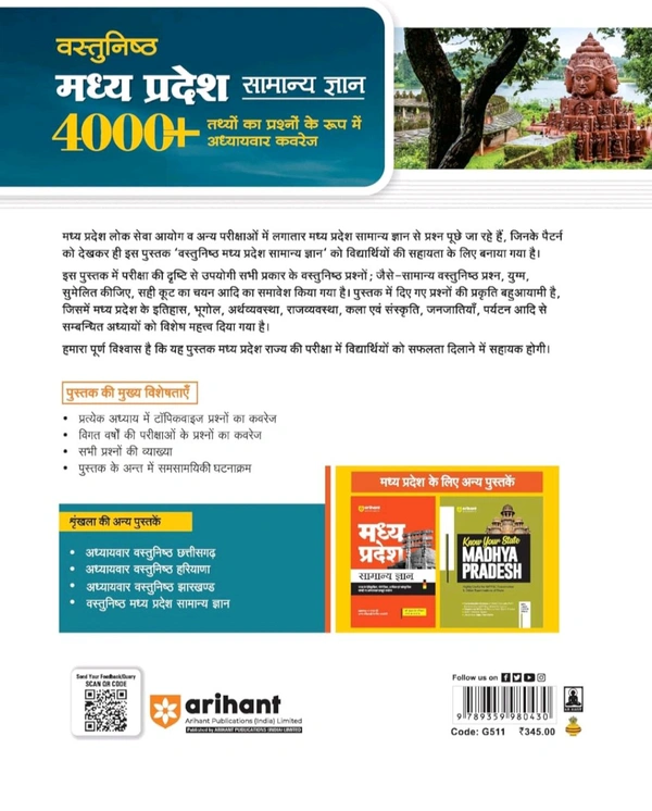 Arihant Vastunisth Madhya Pradesh General Knowledge 4000+ Chapterwise Coverage of Facts in the Form of Questions Hindi| Useful for MPPSC, MP Police, MP Patwari, MP Forest Guard and Other State Examinations Hi