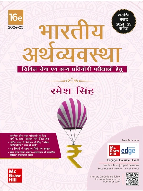 Bhartiya Arthvyavastha (भारतीय अर्थव्यवस्था) by Ramesh Singh for UPSC CSE 2025 | Indian Economy (Hindi) | 16th edition (latest) | Civil Services Exam - Prelims, Mains and Interview | State PSCs exams/ PCS exams | Solved Previous Years' Questions (PYQs) and Practice Questions for Prelims and Mains exams | Hindi Edition | Standard Edition Edition - 1 July 2024