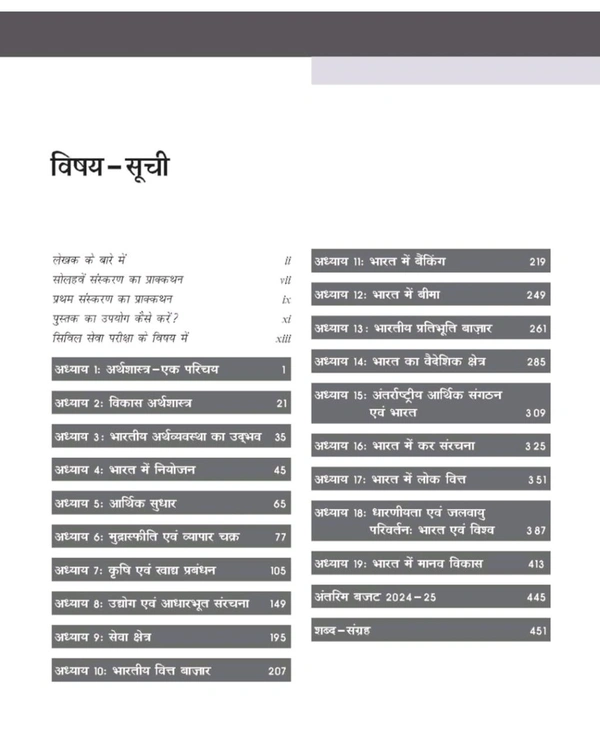 रमेश सिंह द्वारा लिखित भारतीय अर्थव्यवस्था अपने 16वें संस्करण में एक बार फिर सिविल सेवा परीक्षा के उम्मीदवारों के लिए सर्वश्रेष्ठ मार्गदर्शिका साबित होती है। यह पुस्तक UPSC और राज्य सेवा परीक्षाओं की तैयारी करने वाले छात्रों के लिए उपयुक्त सामग्री, गहराई और स्पष्टता प्रदान करती है। इसमें भारतीय अर्थव्यवस्था से जुड़े परंपरागत एवं समकालीन विषयों को व्यापक और सरल तरीके से प्रस्तुत किया गया है।