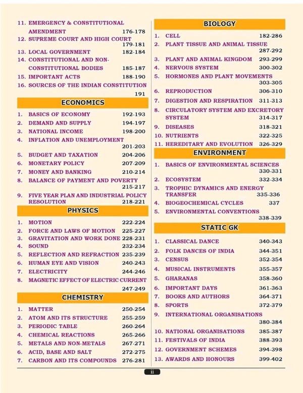 The book includes all the essential General Knowledge & General Science topics in a clear, concise, and exam-oriented manner, making it ideal for quick revision as well as deep study.