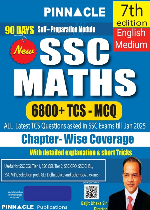 Pinnacle Publications SSC Maths 6800+ TCS MCQ Chapter-Wise Coverage with detailed explanation & short tricks | 7th edition | SSC | CGL Tier - I | CGL Tier - II | CHSL | MTS | CPO | STENO | Selection post | Delhi Police | GD | SSC JE | Other Govt. exam | English medium | For 2025 Exams